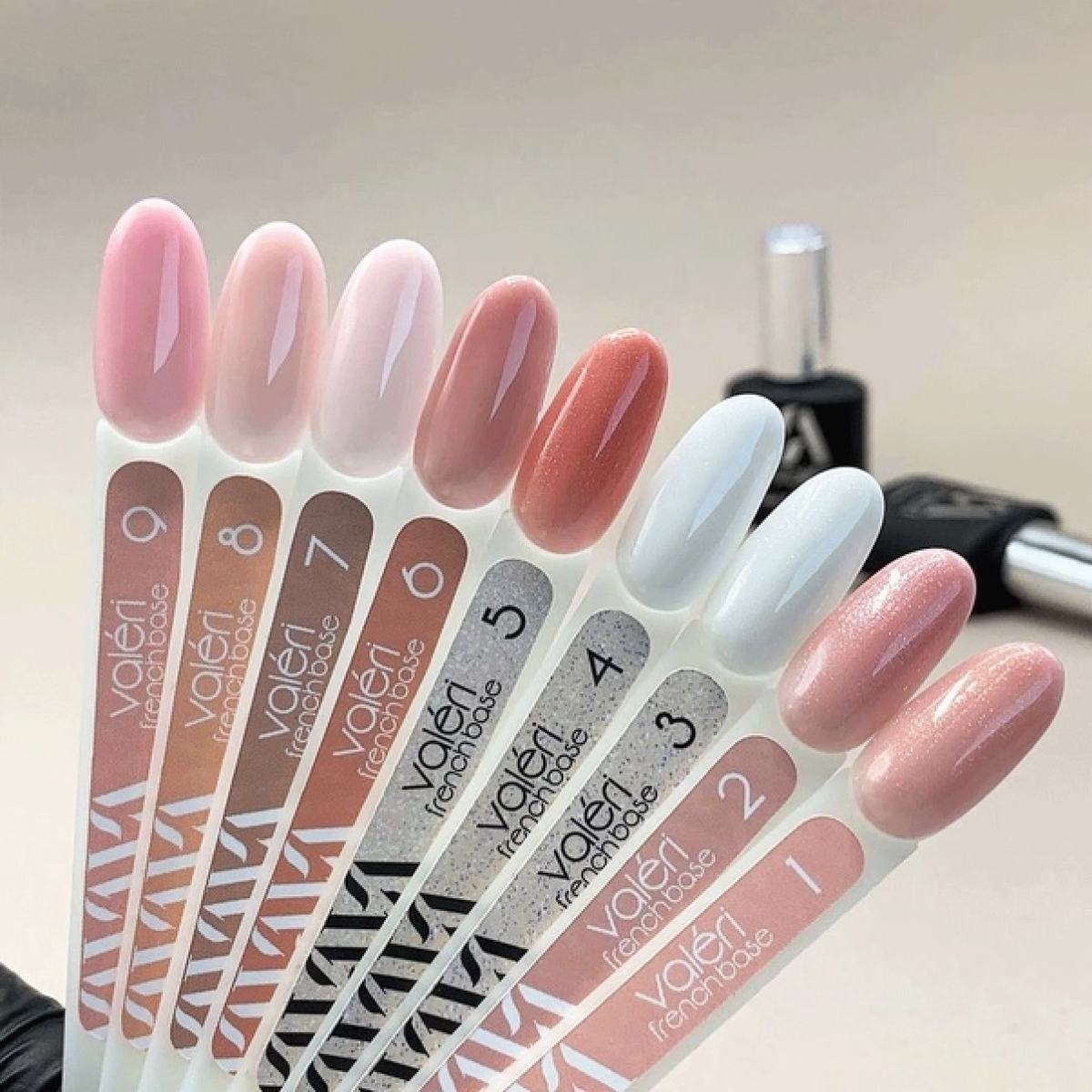 Купити базу для нігтів Valeri Base French можна для всіх типів нігтьових пластин, щоб наносити як самостійне декоративне покриття або в поєднанні з іншими видами дизайну. База Валері палітра підходить для трендових френчів, новорічних та інших святкових покриттів.