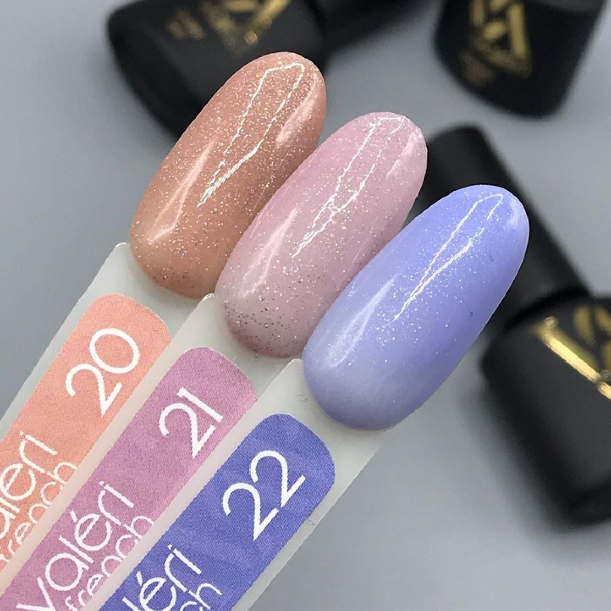 Valeri French Base - універсальні камуфлюючі френч-бази, які відрізняються багатою палітрою відтінків, мають різну консистенцію і щільність.
