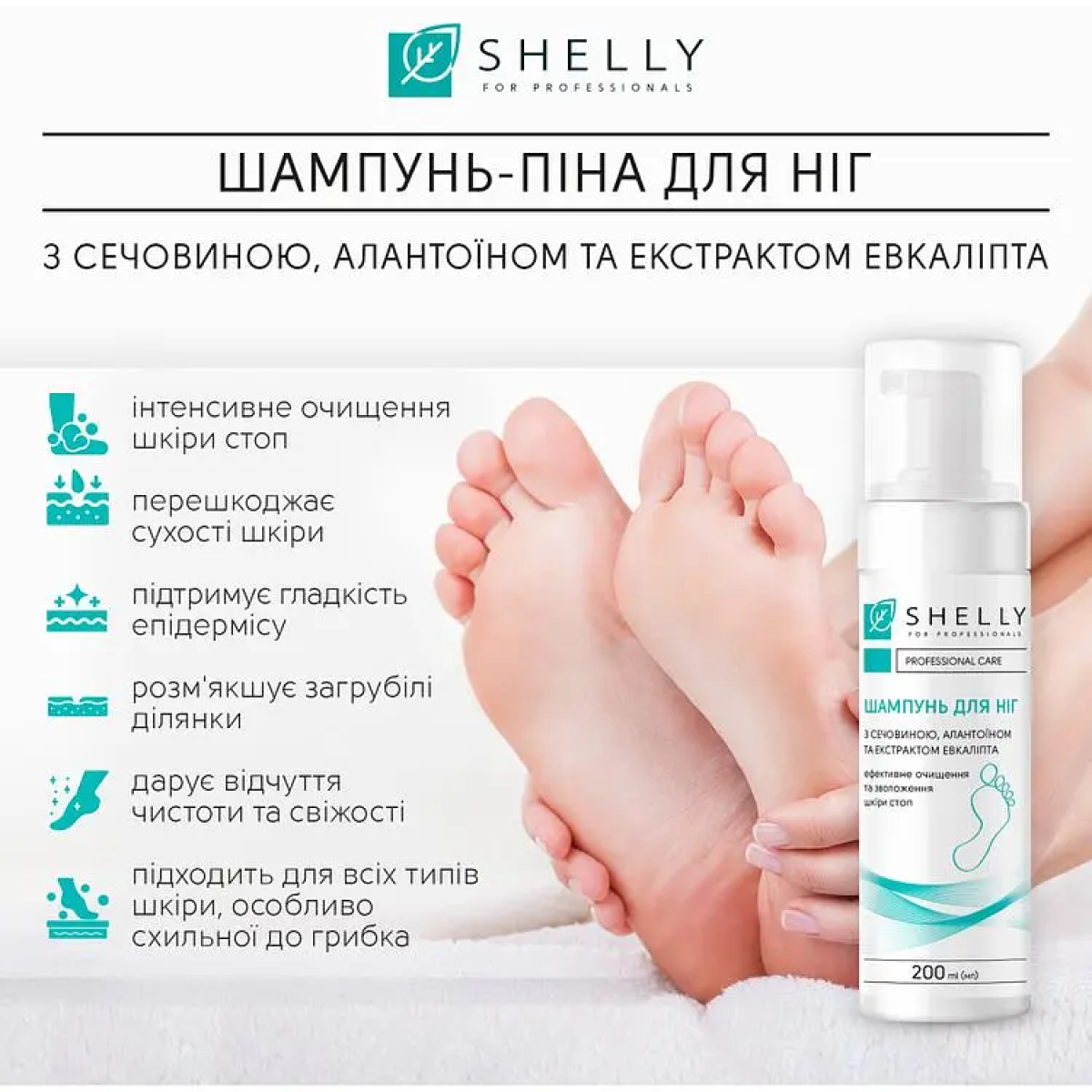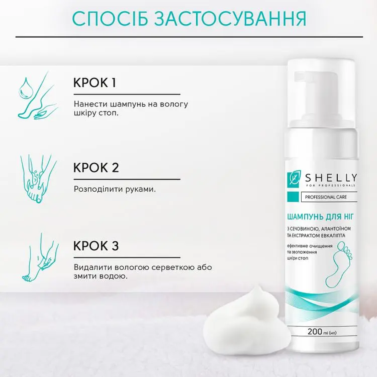 Теги: Шампунь-піна для ніг Shelly з сечовиною, алантоїном та екстрактом евкаліпта 200 мл